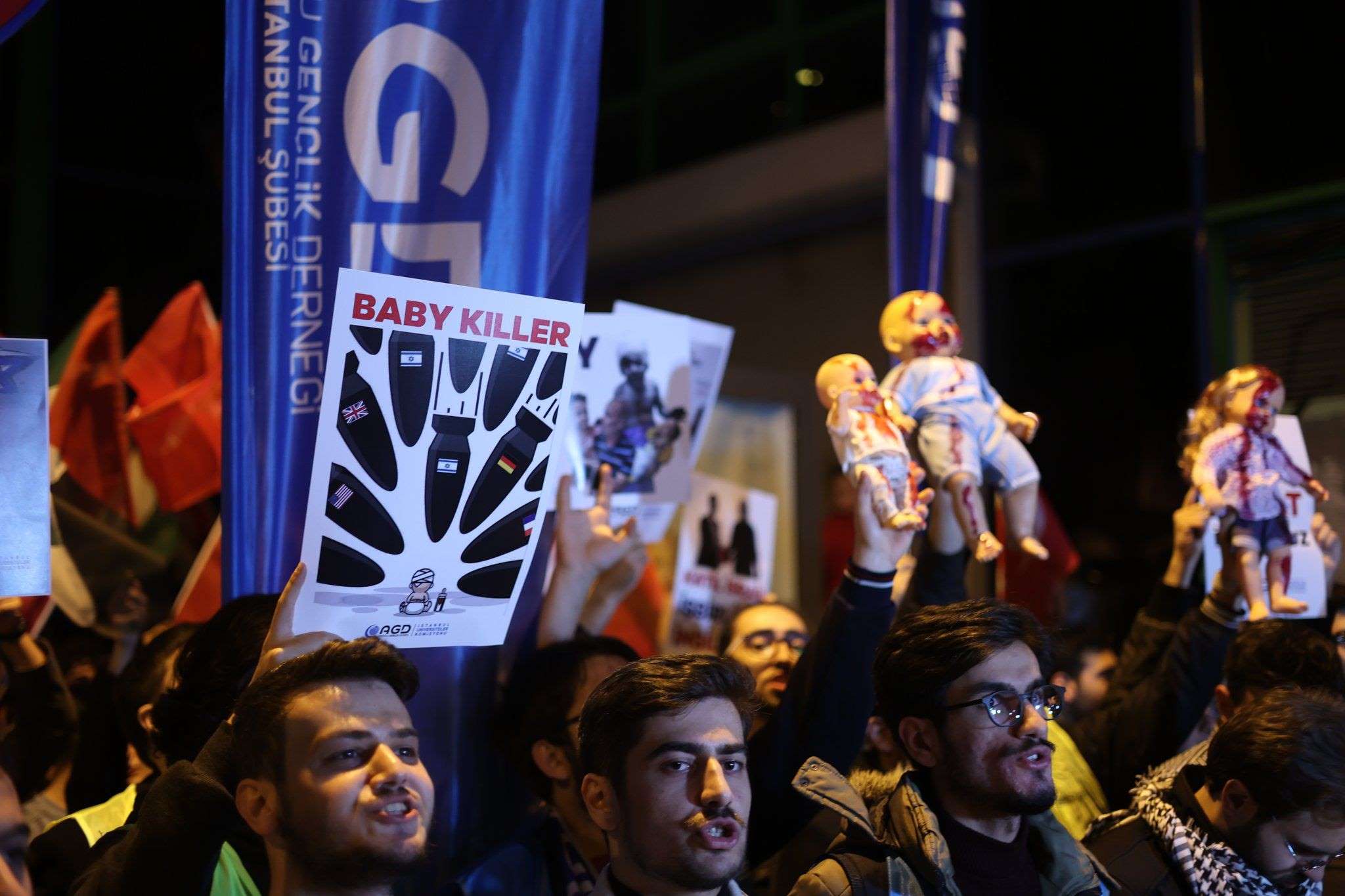 İşgalci İsrail'in işbirlikçilerinin Gazze'de gerçekleştirdiği katliamlarına destek vermesini protesto etmek için, İstanbul'daki İngiltere Konsolosluğu önünde kıyamımızı gerçekleştirdik.