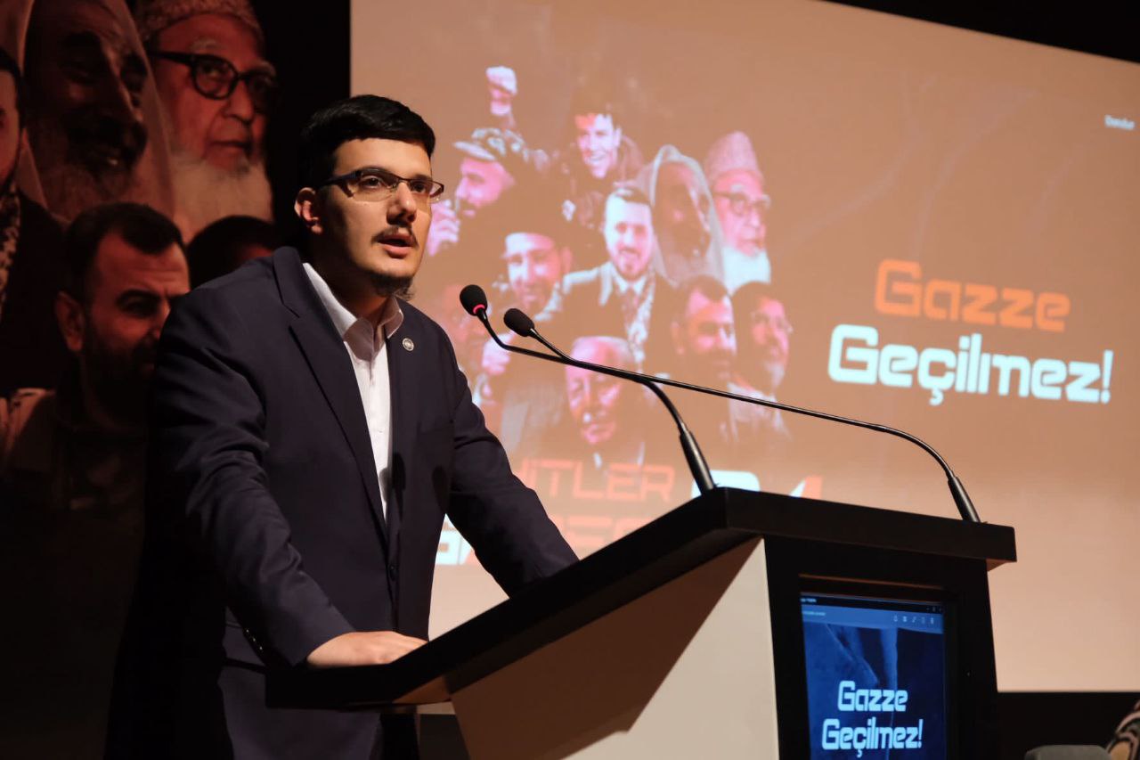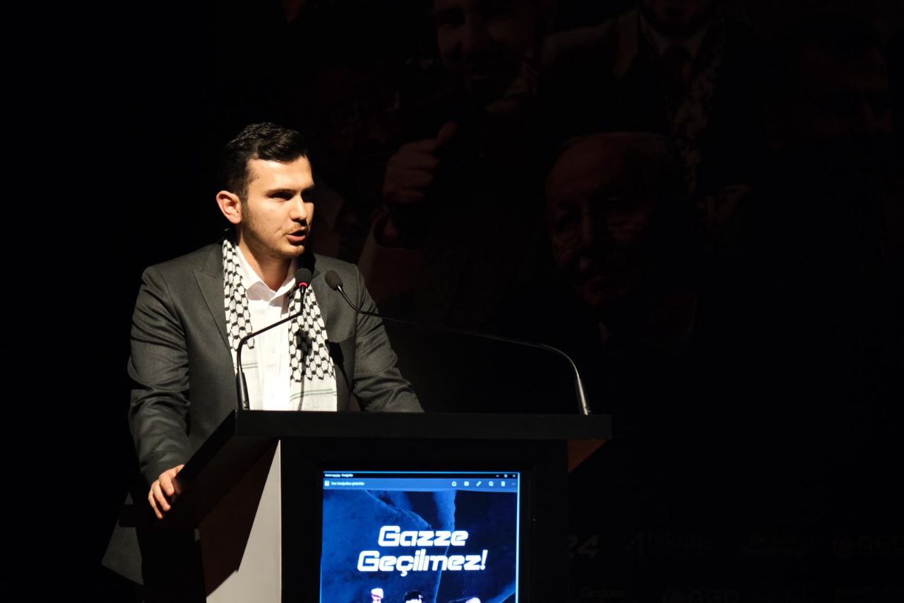 Genel Başkanımızdan sonra katılımcılara hitap etmek üzere sahneye arz edilen, eski Gazze İçişleri Bakanı ve HAMAS Gençlik Başkanı Fetih Hammad Bey'de, "Bizler, Gazze ehli olarak Gazze'yi asla terk etmeyeceğiz. Gazze'de ki toplam nüfus olan, 2,5 milyon insanın hepsi şehit olsa da biz orayı asla terk etmeyeceğiz. Biraz da sizlere Kassam'dan bahsetmek istiyorum. Kassam dediğimiz ordu 40 bin tane mücahit kardeşimizin olmuş olduğu bir ordu olmanın yanında 100 bin kadarının da yedekte beklemiş olduğu bir ordudur. Kassam Mücahitleri, Allah'ın izniyle, hayır ve selamettedirler ve düşmanla savaşmaya devam ediyorlar. Onlar, silahlarını kendileri üretiyorlar. Hamdolsun, bizim silah fabrikamız, o tünellerin altında gece-gündüz demeden, üretime devam ediyor. Siyonist Düşman hala hiç bir koymuş olduğu hedefi gerçekleştirememiş durumdadır. Bizim mücahitlerimiz, her an her vakit kazanç halindedirler ve Allah'ın izniyle o gün geldiğinde hepimiz Mescid-i Aksa'nın avlusunda namazda buluşacağız. Aynı zamanda sizin bu kıymetli duruşunuzu, Anadolu Gençlik Derneğinin bu mübarek cihadını şerefli Gazze halkına ulaştıracağım, Allah'ın izniyle." ifadelerini kullandı.