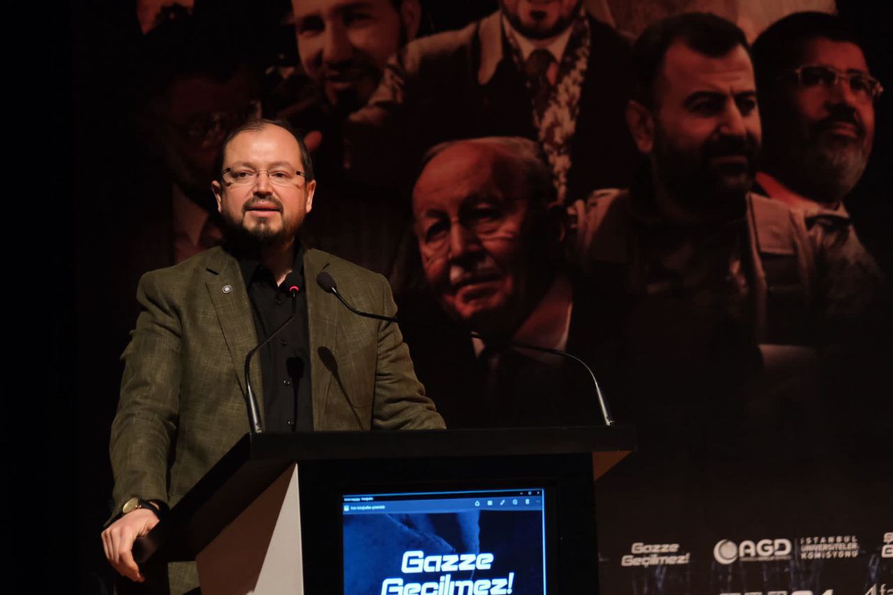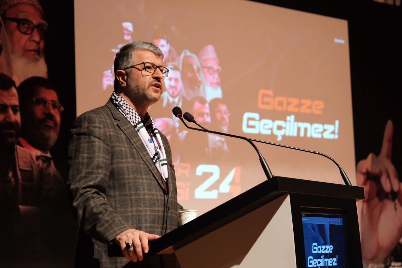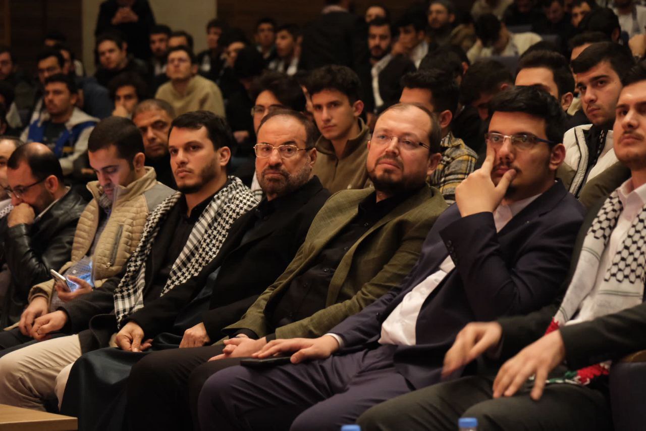 Kur'an-ı Kerim tilavetiyle başlayan programımız, Komisyon Başkanımız Hasan Basri Yazıcı Bey'in açılış konuşmasıyla devam etti. Komisyon Başkanımız Hasan Basri Yazıcı Bey, "Zafer, yeryüzünde 1000 yıllık yaşamak isteyenlerin değil rahatından ve canından vazgeçenlerin olacaktır. İşte, bu yüzden diyoruz ve inanıyoruz ki Gazze asla geçilmeyecektir. Bugün Gazze'de Şehit Salih El-Arurilerin, Ebu Ubeydelerin, Yahya Sinvarların, Hamas'ın, İslami Direniş'in ortaya koymuş olduğu mücadele azmimizi ve inancımızı arttırmalıdır. Onlar zor şartlar altında böylesi bir mücadele vermekten kaçınmazken, elbette elimizdeki imkanlarla bizlerin yapacağı çok şey olmalıdır. Ümmet, Allah'ın izniyle, Kudüs davası etrafında saflar halinde bir araya gelecek ve bu vesileyle İslam Birliği kurulacaktır." ifadelerini kullandı.